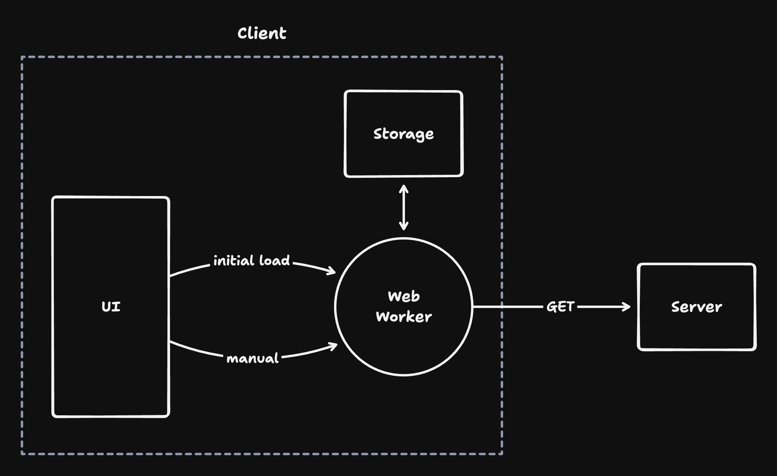 The user can then click on a button to trigger a manual sync. Clicking the button sends a message to the worker to perform another sync (HTTP request).