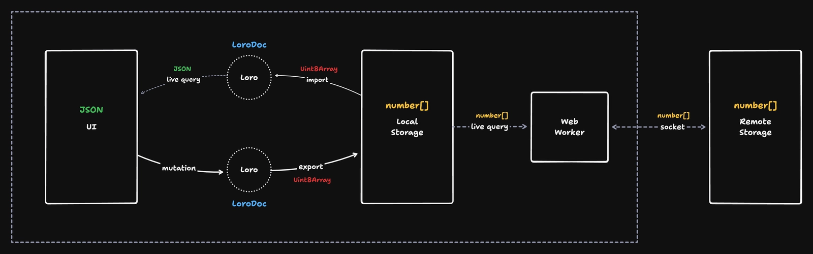 - Migrations: by using Loro and storing data as bytes, in practice no data migration should be required. Loro will merge changes regardless of their schema