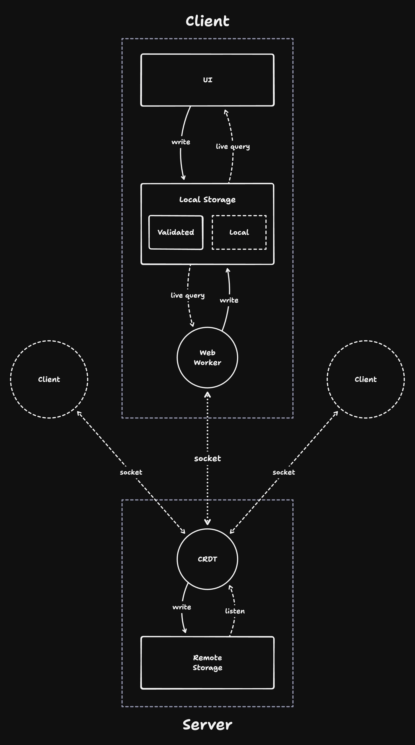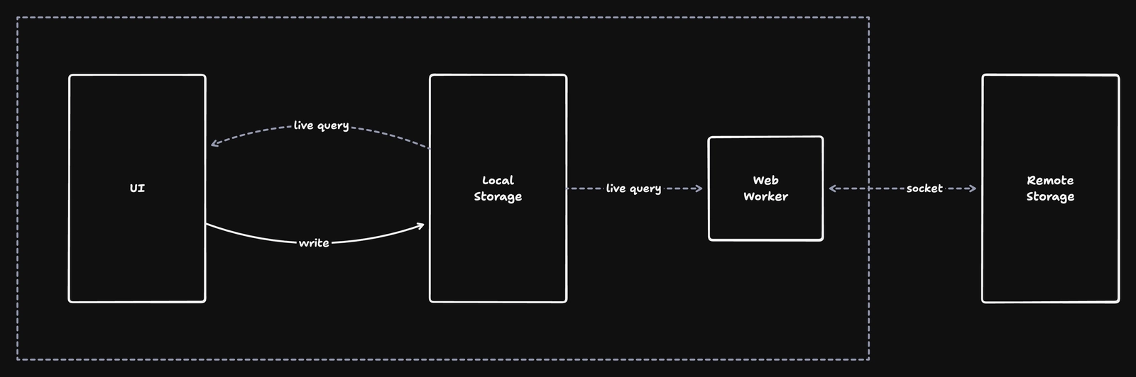I implemented a sync engine for the web: reactive client local storage, web workers for background sync, socket, CRDT, server storage. This is how it all works.