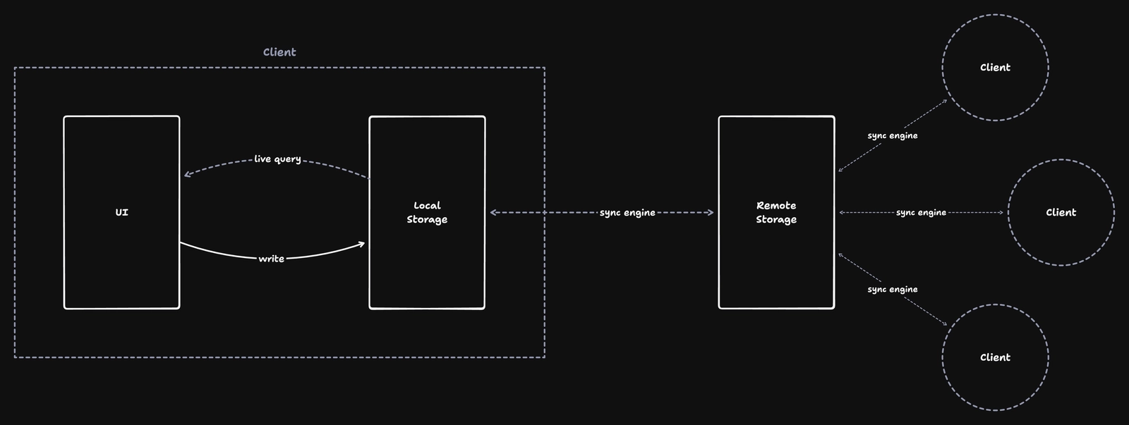 A sync engine works "in the background" to update the local data to include changes from other clients.
