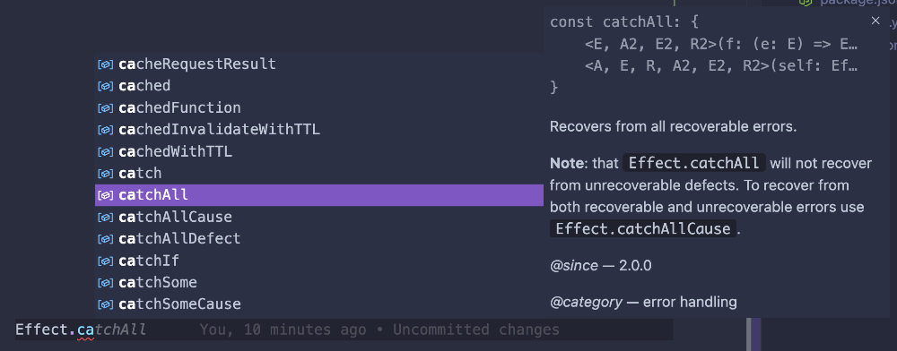 - Use the IDE autosuggestions to search the API you need. From there you can read the function documentation, read the type signature, or go directly to the source implementation. All without leaving your IDE.